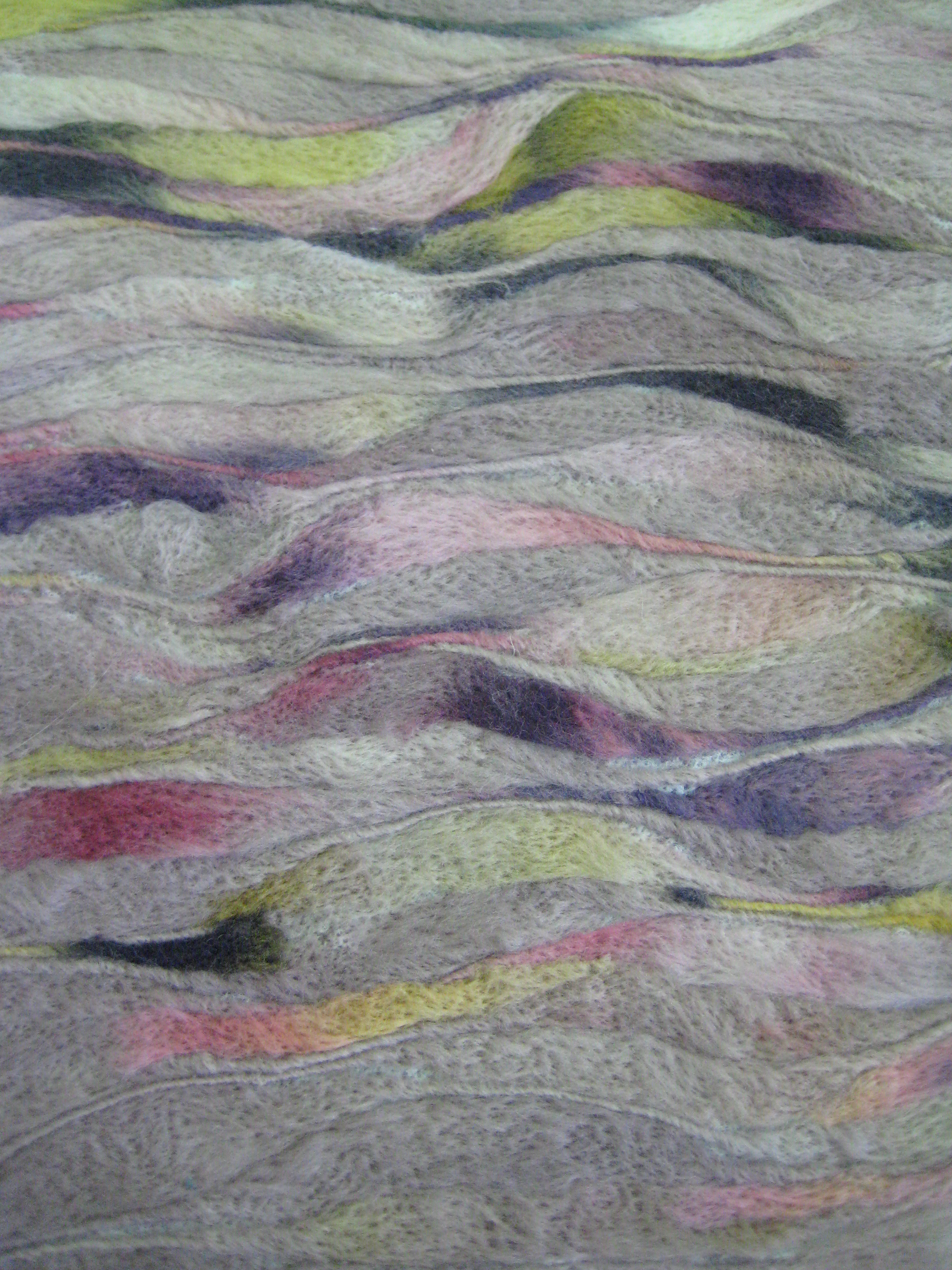 Our newest member, Marie Dunne, attended the Blanchardstown and Lucan Drop In sessions and showed us some of her beautiful work. Above is a piece made with wool rovings using an embellishing machine.