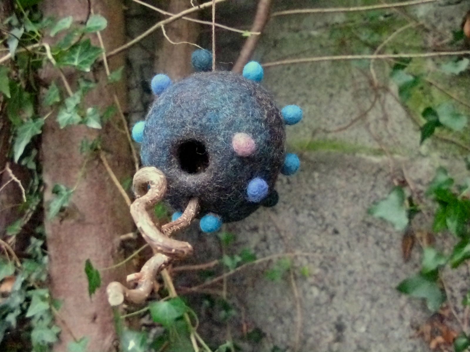 Ever wondered if a birds nesting ‘box’ could be made in felt? Anne Walsh has been experimenting with the idea using the techniques she learnt from Pam McGregor last year in Amsterdam. She doesn’t claim that the vessels will work as bird nest sites or feeding stations (that’s up to the birds) but they can be pretty and the techniques would work for many sculptural forms.Come and join us on Sunday next, 9th February, in the Feltmakers Studio in the Phoenix Park (beside Knockmaroon Gate)from 10.30-13.00