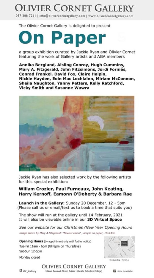 Feltmakers Ireland are pleased to share that committee member Annika Berglund will be showing some new work in the winter group show at the Olivier Cornet Gallery (facebook.com) in Dublin. The title of the exhibition is “On Paper” and it is co-curated with Jackie Ryan. The show can be viewed virtually or you can make an appointment to go and see it in the gallery.