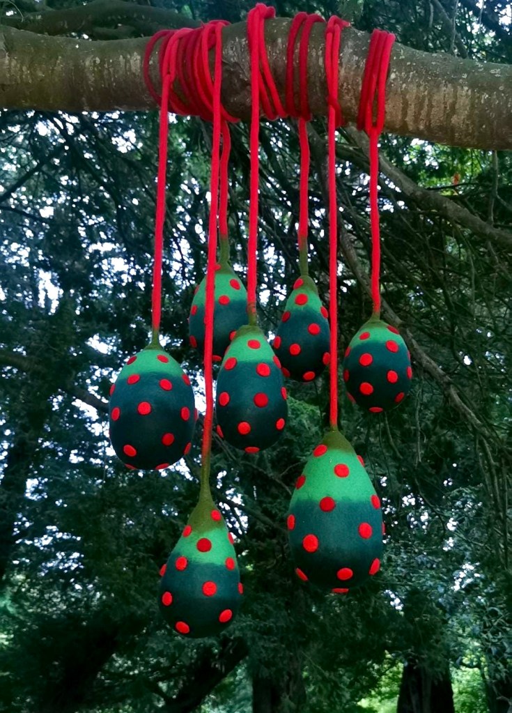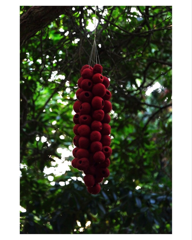 Bright red spots immediately conjure up recognition of poison and green, in contrast, is synonymous with nature. That is why I chose these colours for my felt hanging sculpture. The concept of this piece is to raise awareness that every rainfall is toxic. It’s called acid rain due to high levels of pollutants in the atmosphere. These toxins are invisible, so I made the piece very visible and tactile for maximum impact.