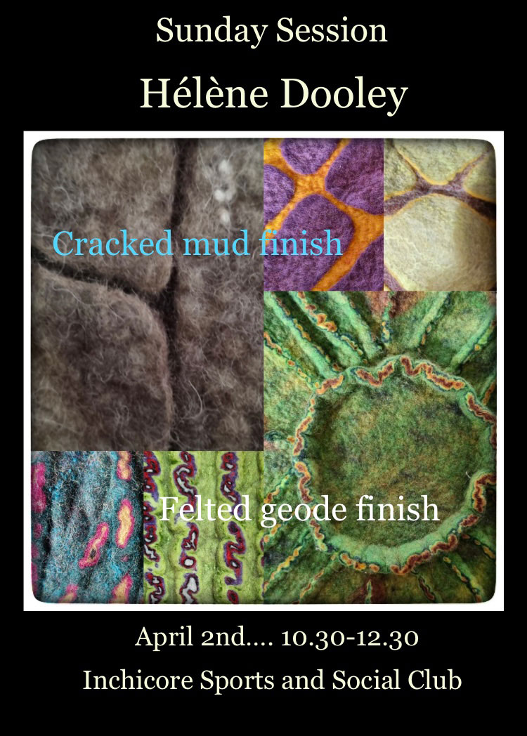 This Sunday, the 2nd of April, Feltmakers Ireland member and tutor Helene Dooley will share with the group how to create the Cracked Mud Technique and the Felted Geode Finish.