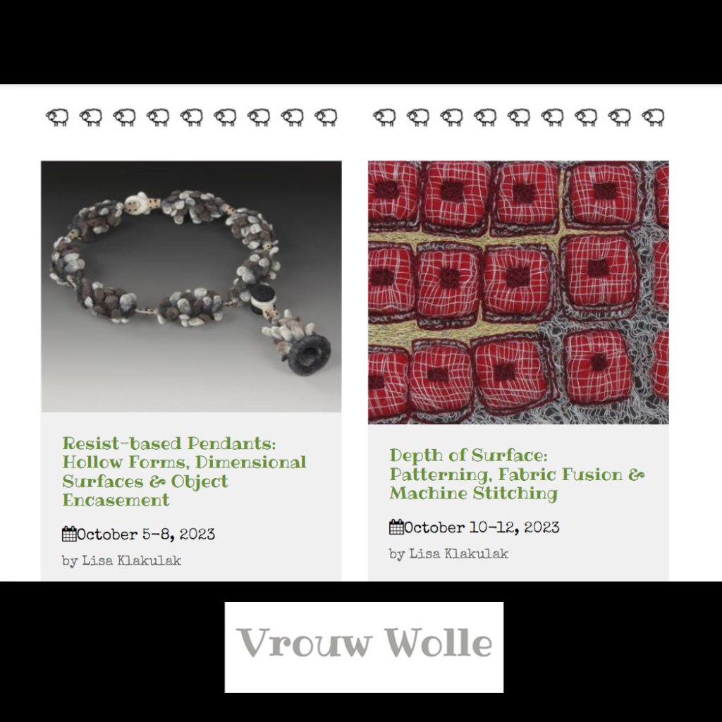Several exciting felting classes are coming up at Vrouw Wolle in Belgium. Teachers, including Lisa Klakulak and Charlotte Sehmisch, will teach this autumn. In January, Yaroslava Troynich will be teaching two classes. Anita Johnson is coming in September 2024.
