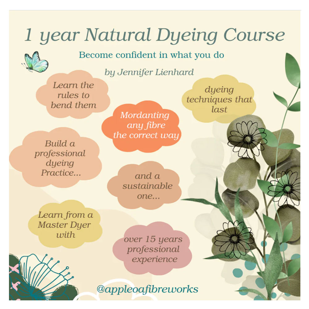 For more information, visit her website –https://appleoakfibreworks.com/collections/workshops-teachings/products/a-one-year-course-in-natural-dyeing-2024
