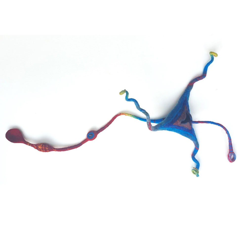 I used to work in ceramics, glass, and bronze but was looking to change to some form of textiles in late 2019 and early 2020, mainly to find less energy-hungry means of expression. I started with a number of short workshops at the 2019 Dublin Knit and Stitch, of which the felting one was probably my favourite. Luckily, the 2020 Basic and Beyond happened soon after, which further whetted my appetite.