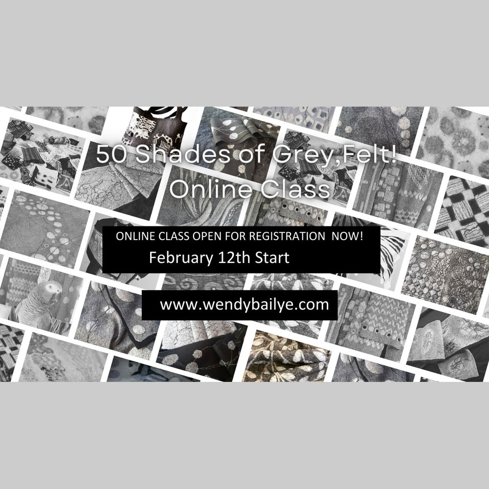 Wendy Bailye has an upcoming online class, ’50 Shades of Grey Felt’, which starts in February.