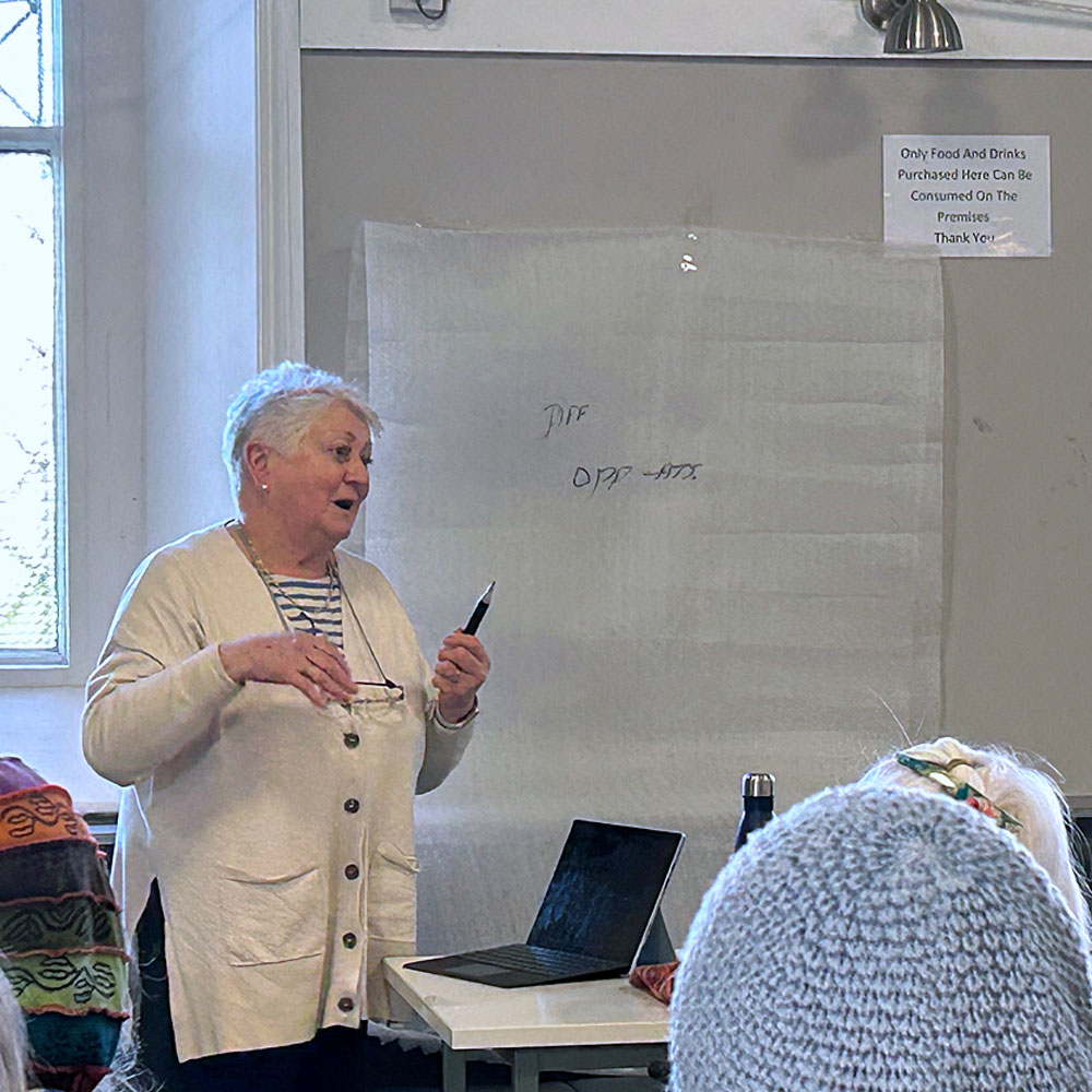 Guild member Breda Fay kindly stepped in to help his past Sunday when our scheduled speaker became ill. Breda spoke to the audience about how we could generate ideas and inspiration to create artwork, whether for our upcoming exhibition, ‘Opposites Attract’ or other shows.