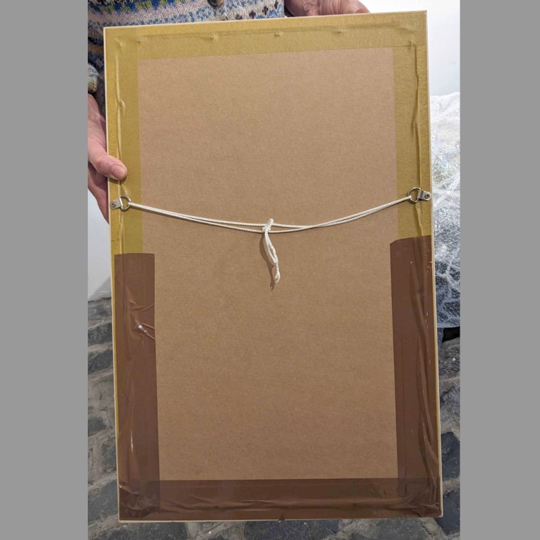 In general, frames should be a bit larger than the piece to allow for a bit of a border and not have the actual edge of the felted piece squashed under the ‘rebate’ of the frame. Some people may have equipment at home, e.g., a mitre saw, to make a frame or order a suitable one from a professional framer. There are many ready-made frames in different sizes on the market or online. [One word of warning – in previous years of our exhibition, members have submitted pieces in IKEA frames, some of which sadly fell apart when hung up. It is perhaps best to avoid this brand].