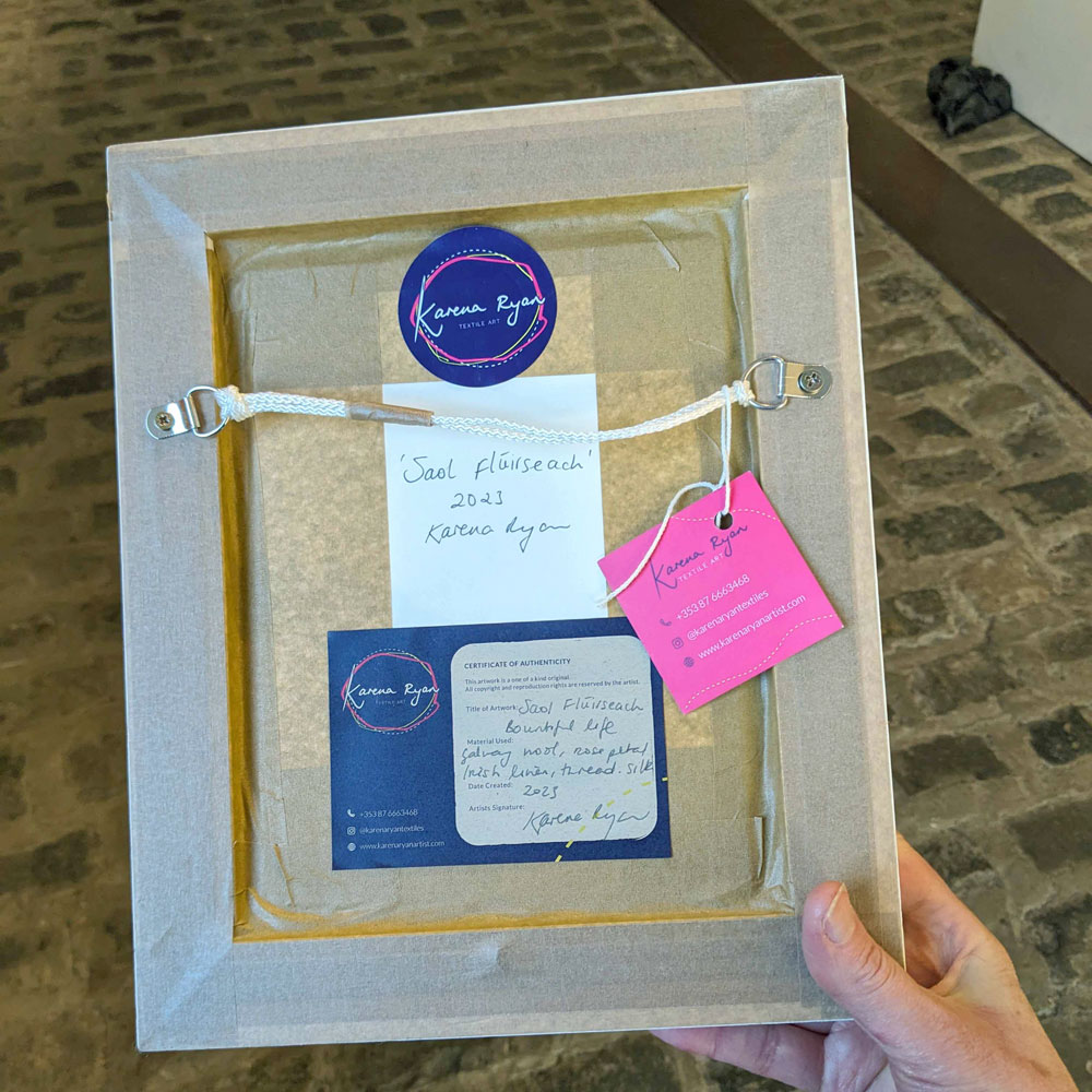 The first piece pictured above, by Claire Merry, has a box-style frame from Blue Ribbon Art Supplies and Framing. Member Caoimhe Tuthill recommends Strand Framing for her framing needs.