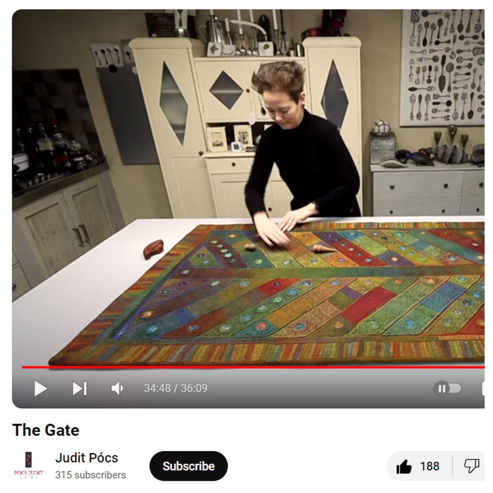 In early 2021, during the pandemic, the International Felt Association (IFA) commissioned the film as part of its ReConnect program series. The film covers three topics related to Judit Pocs’ feltmaking: spatiality, material use, and recycling. It also follows Judit as she creates a large wall panel entitled ‘Gate’.