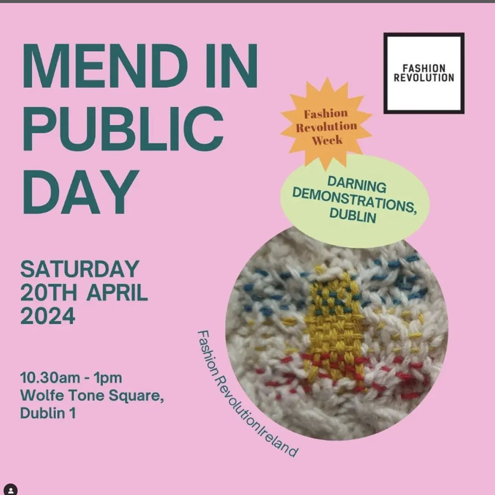 This Saturday, the 20th of April, as part of Fashion Revolution‘s #MendInPublicDay campaign, Kim O’Driscoll from Project Prolong is organizing an event in Wolfe Tone Square, Dublin 1, from 10:30 AM to 1:00 PM.