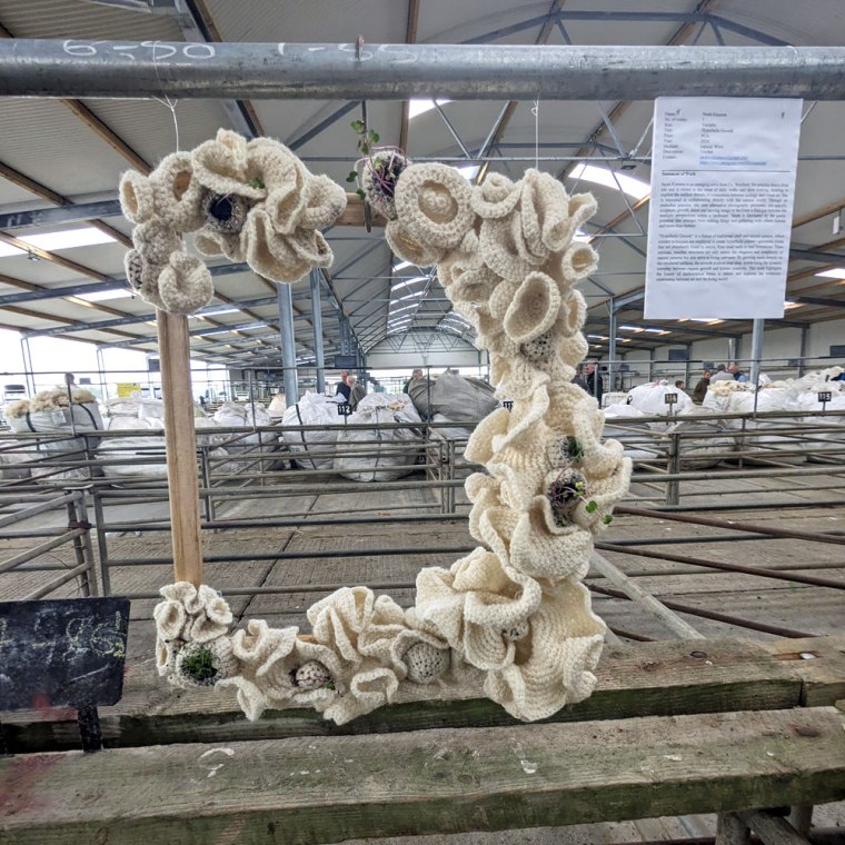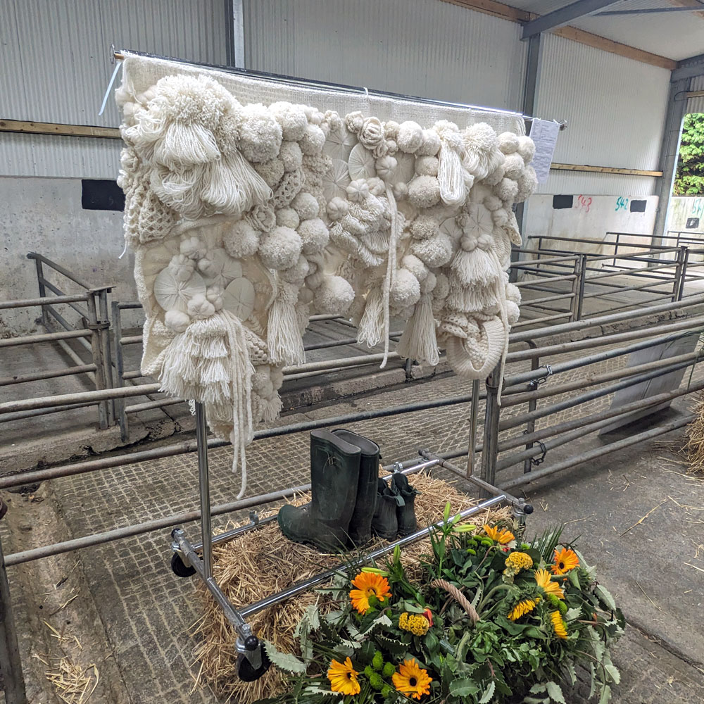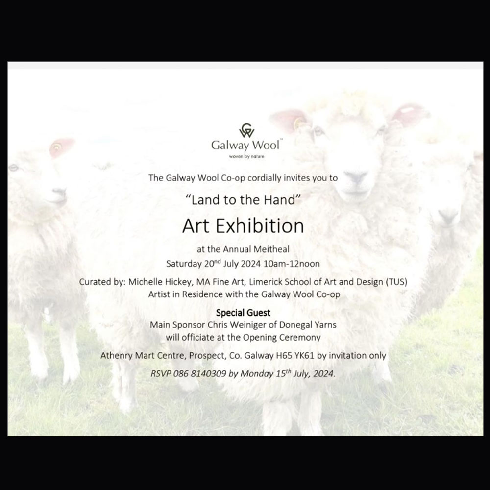On Saturday, the 20th of July, 2024, the exhibition “Land to the Hand” celebrated the rich heritage of native Irish Galway Wool at the annual Meitheal in the Athenry Co-operative Livestock Market. It was the fourth yearly Meitheal organised by the Galway Wool Co-op, a voluntary group of people raising the native breed of Galway Sheep. Blátnaid Gallagher is the group’s secretary and excellent ambassador.