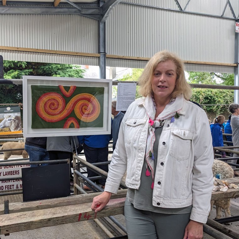 Claire McGovern from Rhyme Studio was awarded for her contemporary rugs; this award was sponsored by Aviation Graphix. For her contemporary works, Karena Ryan was awarded by the Galway Wool Co-op. Karena is a member of Feltmakers Ireland! Additionally, Jean Long was awarded for her Geansaí Chléire, also sponsored by the Galway Wool Co-op. Lastly, Evin Higgins of Caoirigh Farms was given the Industry Award for Innovation, sponsored by Vincent Hughes from the Aran Woollen Mills.