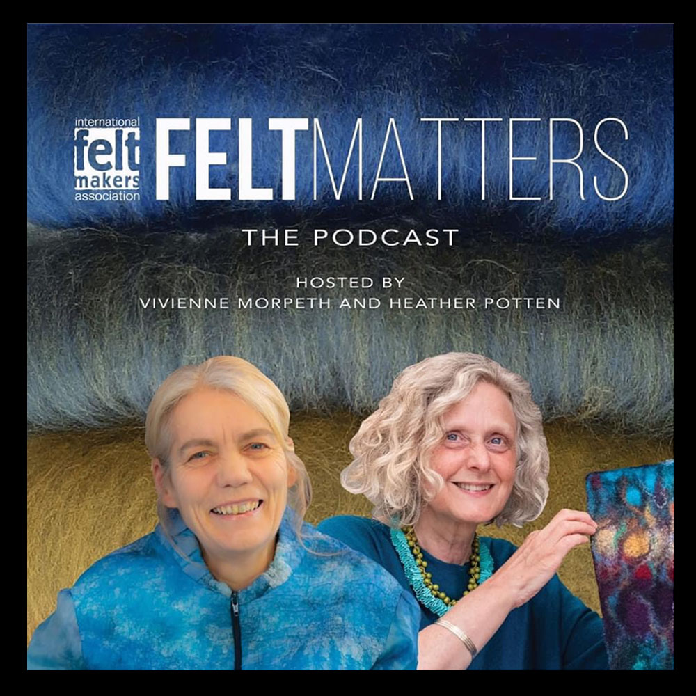 The International Feltmaker Association (IFA) has a new podcast! Cohosts Vivienne Morpeth and Heather Potten discuss their love of all things felting. The podcast is an excellent way to learn about different feltmaking perspectives while felting, cooking or walking your dog!