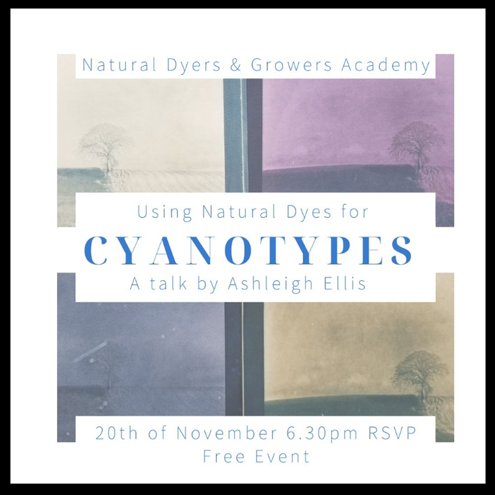 For more information and to register, visit this website – https://the-natural-dyers-academy.mn.co/events/cyanotypes-a-talk-by-ashleigh-ellis
