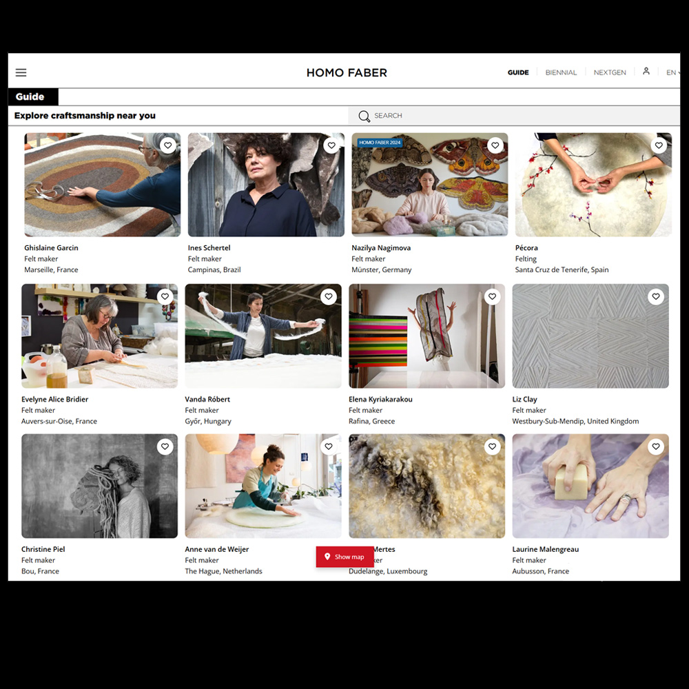 Here is a link to the listings for the artisans under the ‘felt maker’ category pictured in this post. Note: There are none (yet) from Ireland. https://www.homofaber.com/en/searchresult?crafter=Felt%20maker&craftername=Felt%20maker