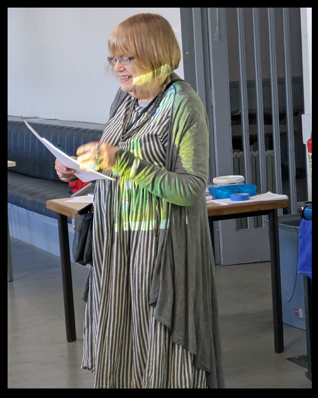 Treasurer, Annika Berglund, reported on our finances, which were approved by the auditor, and the Wool Project, our book, ‘Exploring Irish Wool for Feltmaking’, which is also doing well and has been purchased by wool enthusiasts in Ireland and beyond, including the USA and Europe. She also introduced our new treasurer, Samantha Fagan, to the group.