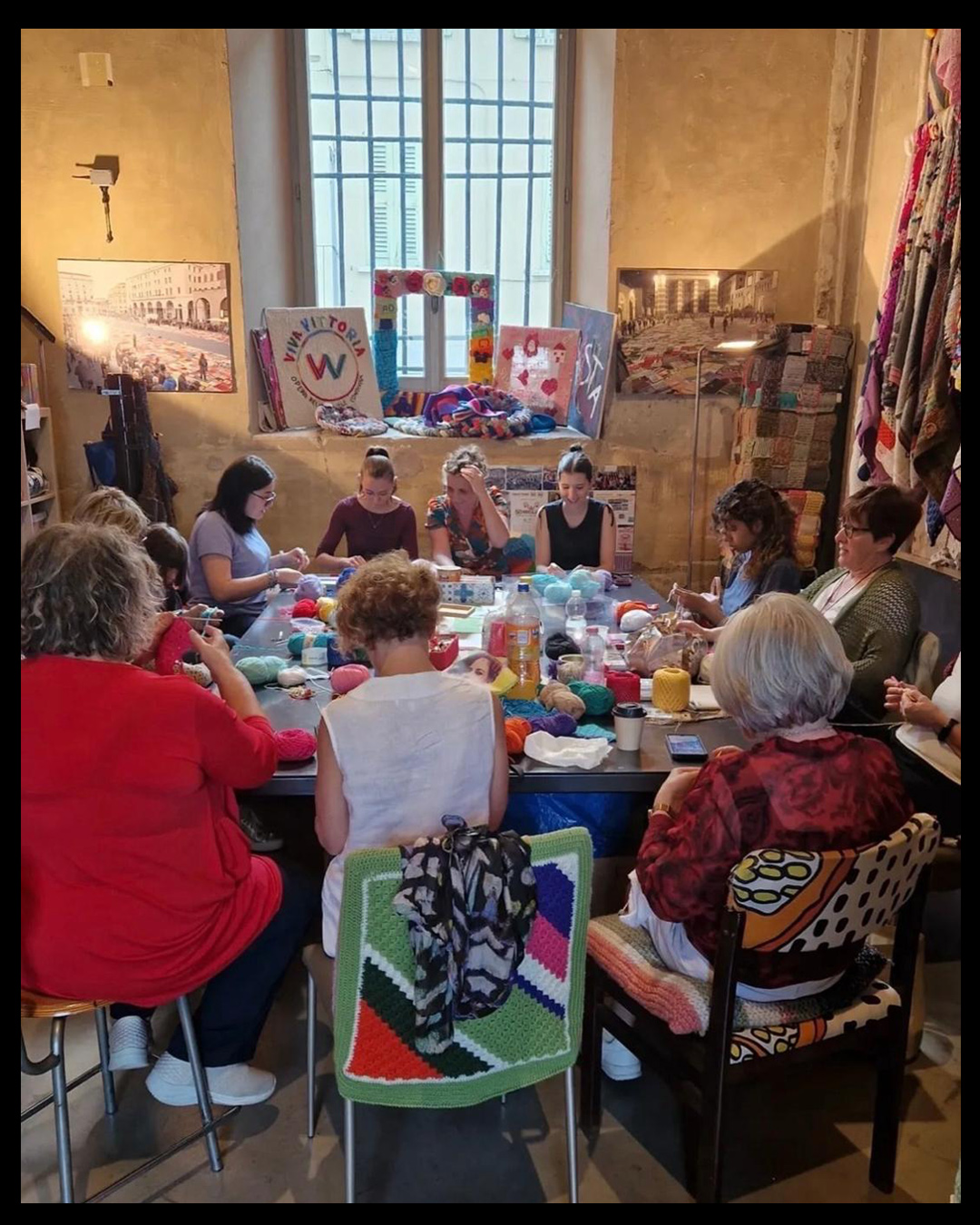 On the fourth day ( this sounds a bit biblical), we started our work placement at the wonderful Viva Vittoria. We had no idea what to expect. We had no Italian, just Google Translate on our phones, and to be honest, between the three of us, we had no skills in the knitting and crocheting department. So, uh ohh, guess what? This non-profit organisation is all about woolly squares. What to do?