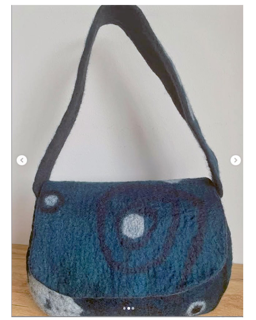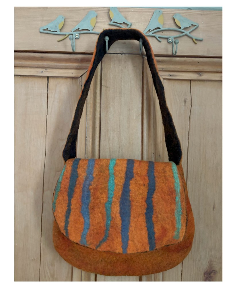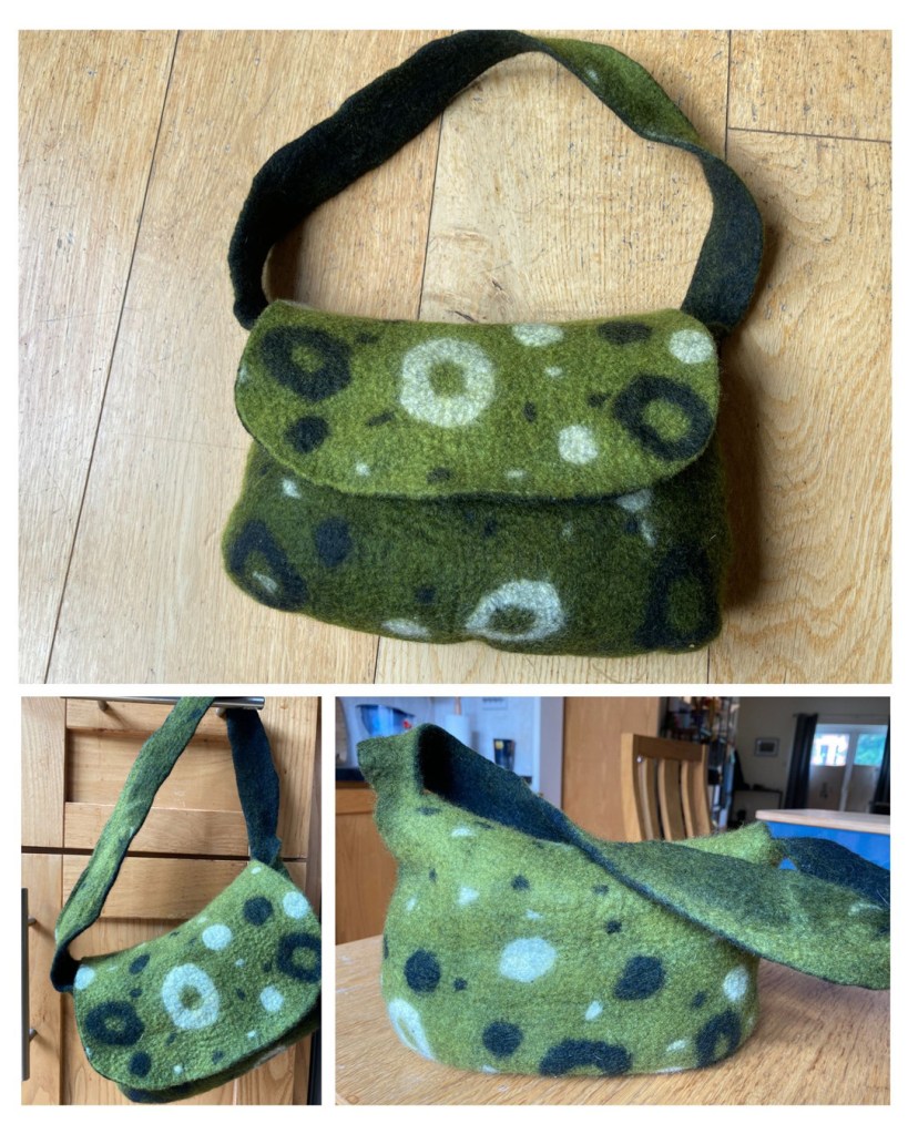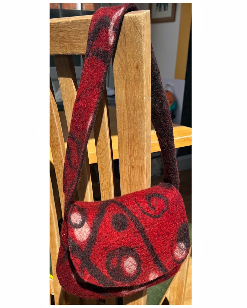 For those interested in learning more, Annika mentioned that the method of creating the bag’s clever handle was adapted from Mandy Nash‘s book, ‘Making Felt Bags’, which, while out of print, is nonetheless available via Dubray Books’ website – https://www.dubraybooks.ie/product/making-felt-bags-9781785008627