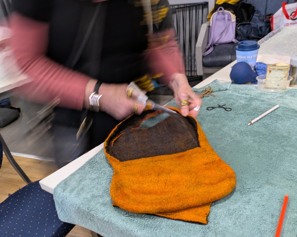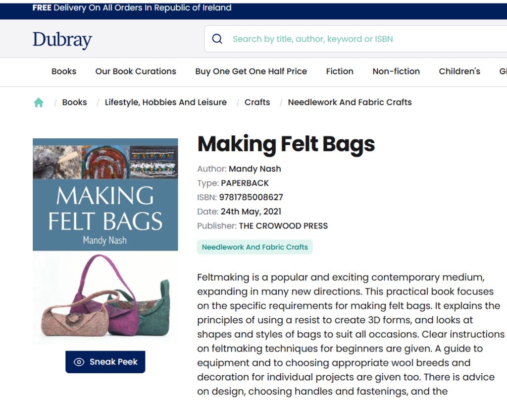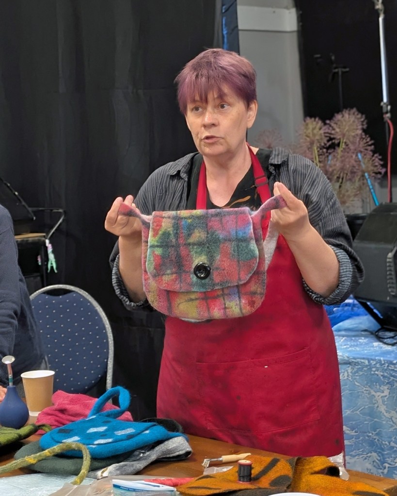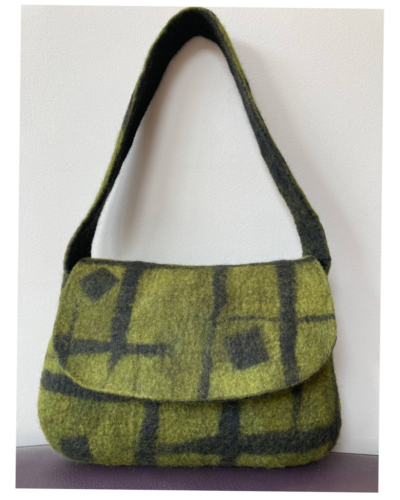 For those interested in learning more, Annika mentioned that the method of creating the bag’s clever handle was adapted from Mandy Nash‘s book, ‘Making Felt Bags’, which, while out of print, is nonetheless available via Dubray Books’ website – https://www.dubraybooks.ie/product/making-felt-bags-9781785008627