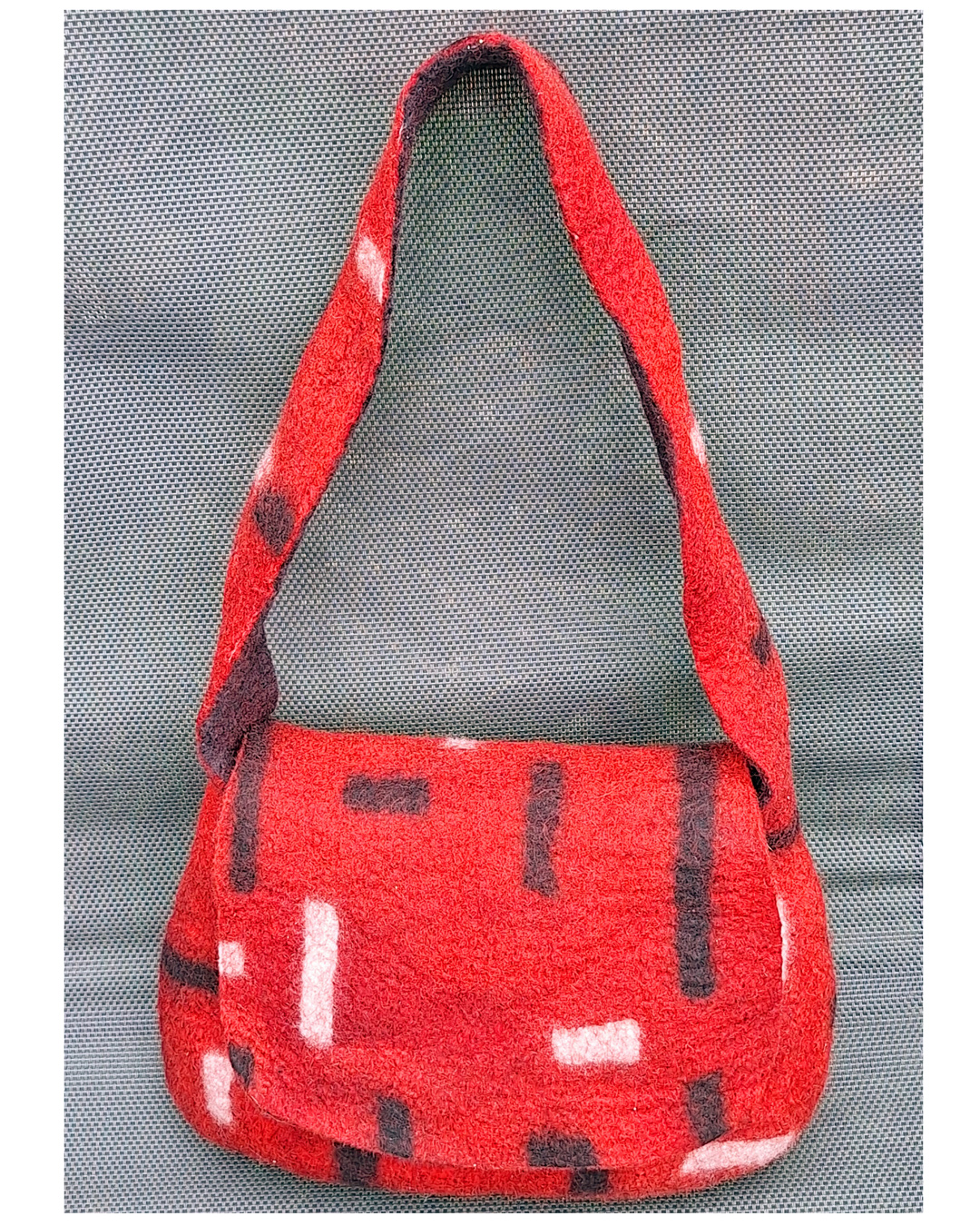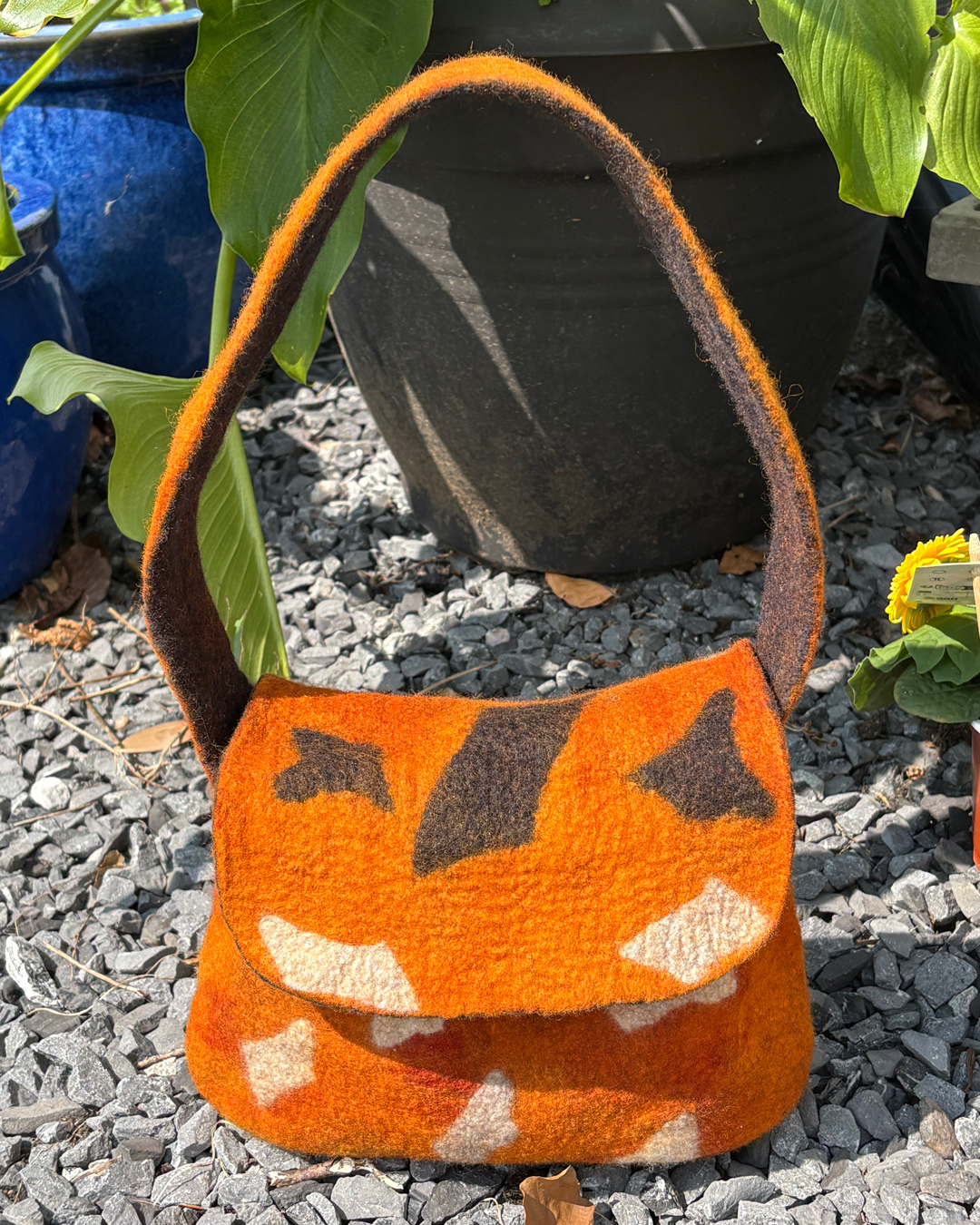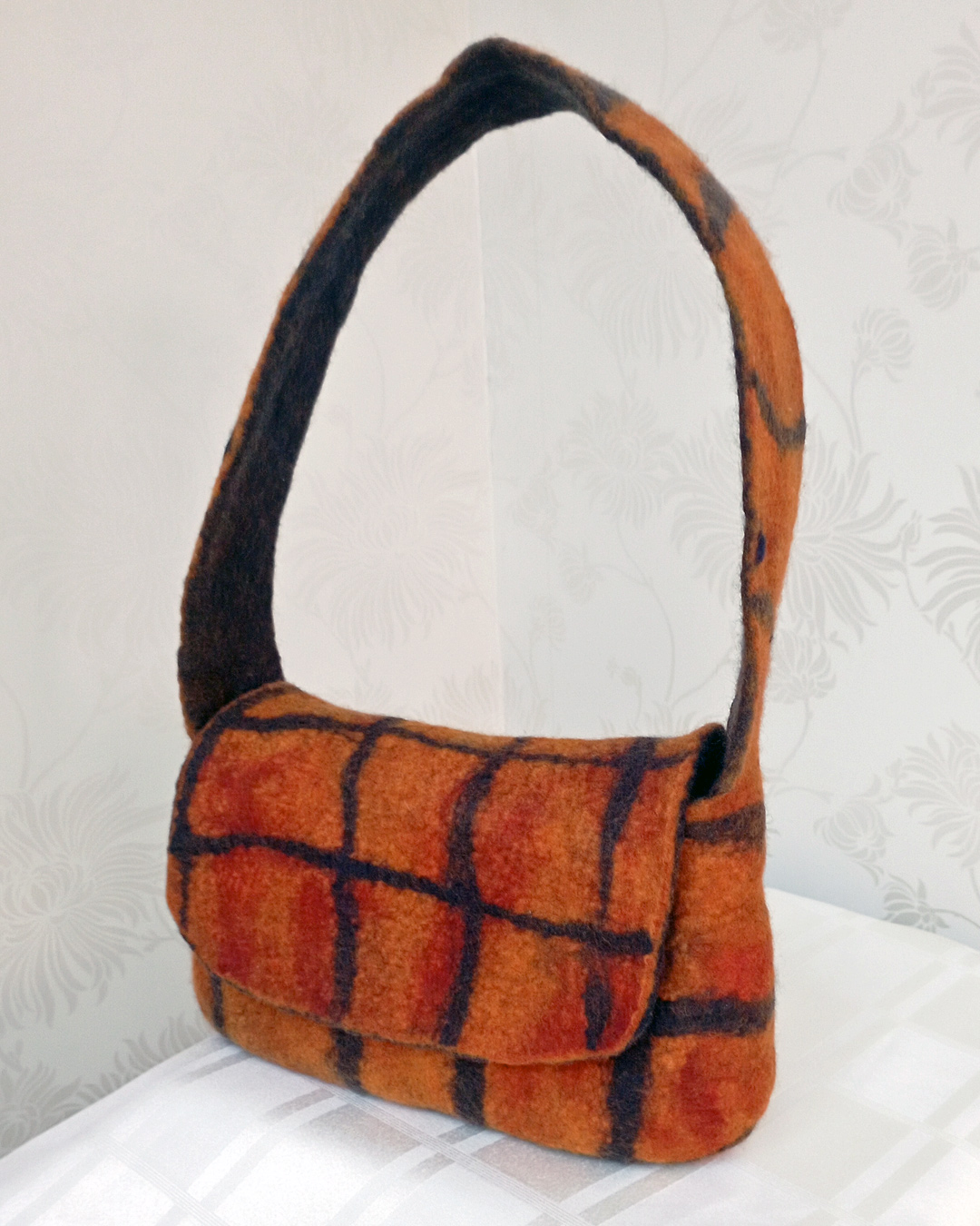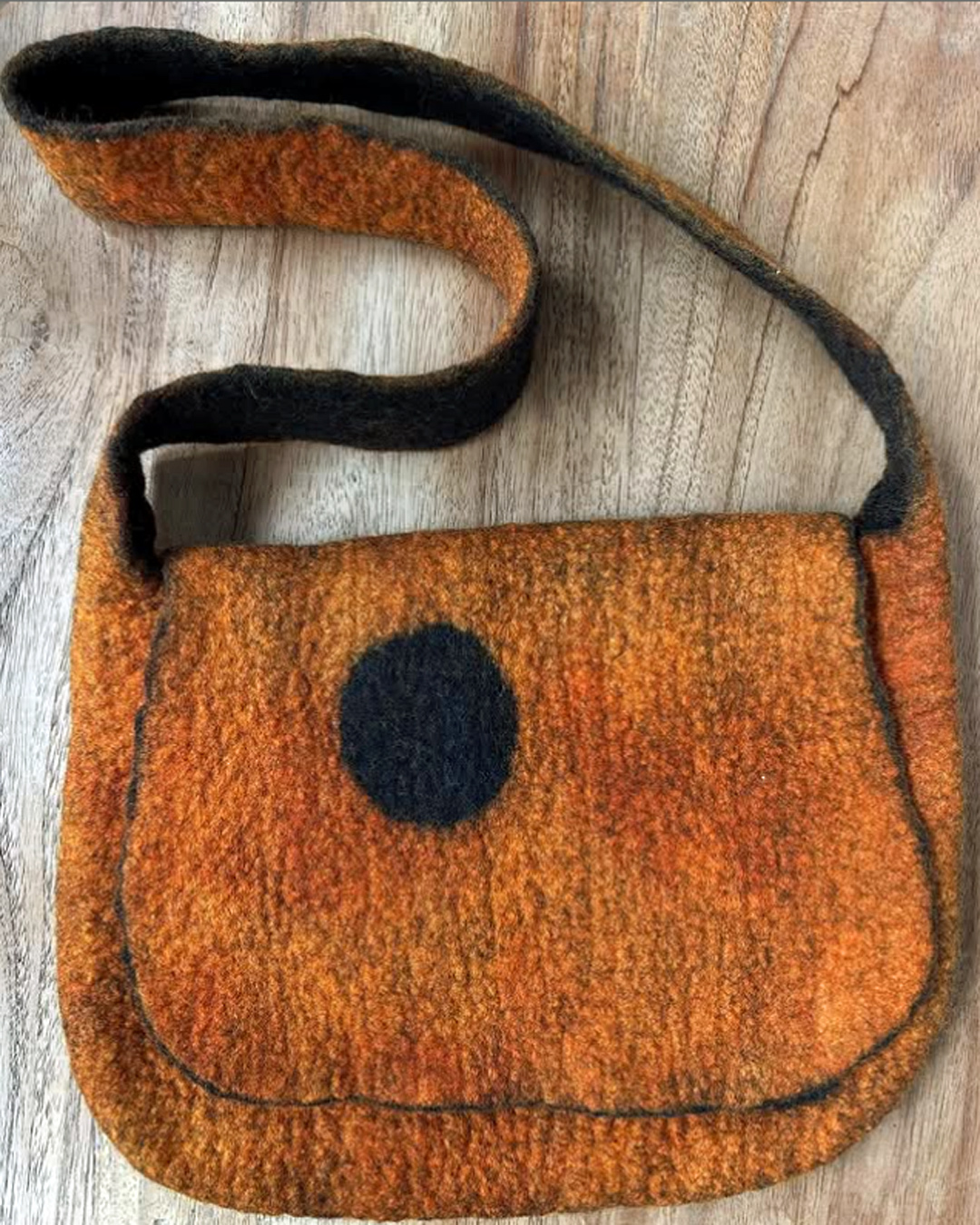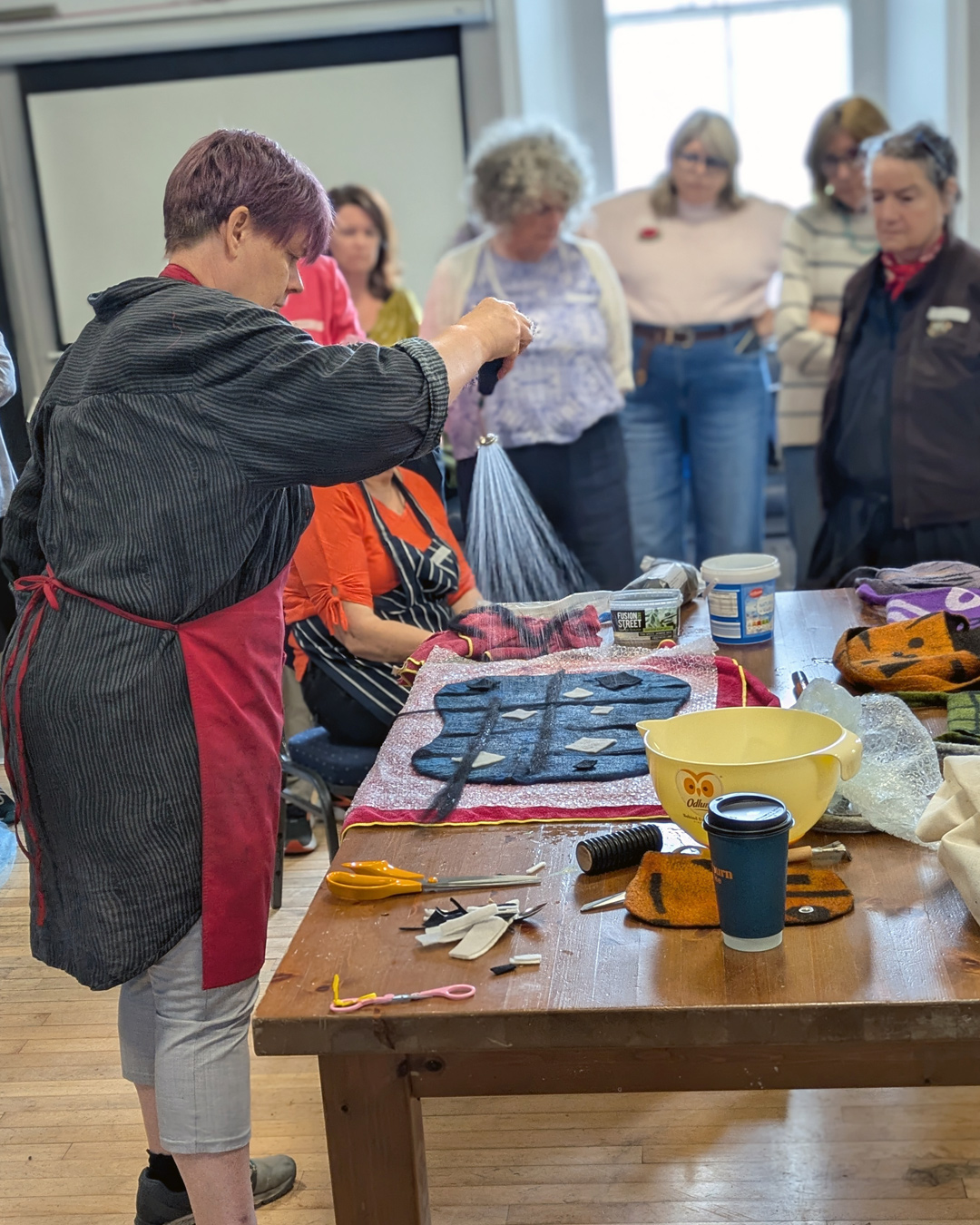We had much to accomplish within one day—laying out fibre, rubbing, rolling, fulling, shaping, and transforming the wool roving into stylish, one-of-a-kind bags with a flap, strap, and pocket!