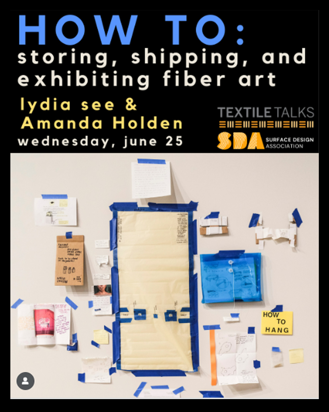 Learn how to store, pack, ship, and exhibit textile and fibre-based work with an eye toward preservation. Curator and Gallery Director Lydia See and Textile Conservator Amanda Holden will present on a range of methods, from industry standards to innovative DIY ideas.