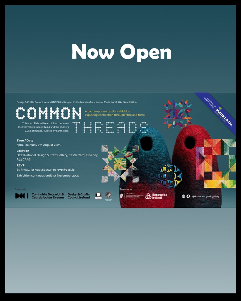The ‘Common Threads exhibition’ opened on Thursday, the 7th of August at the Design and Crafts Council of Ireland’s (DCCI) National Design & Craft Gallery, Castle Yard, Kilkenny. The show curated by Sarah Ross features a mix of work from Feltmakers Ireland and the Quilters’ Guild of Ireland.
