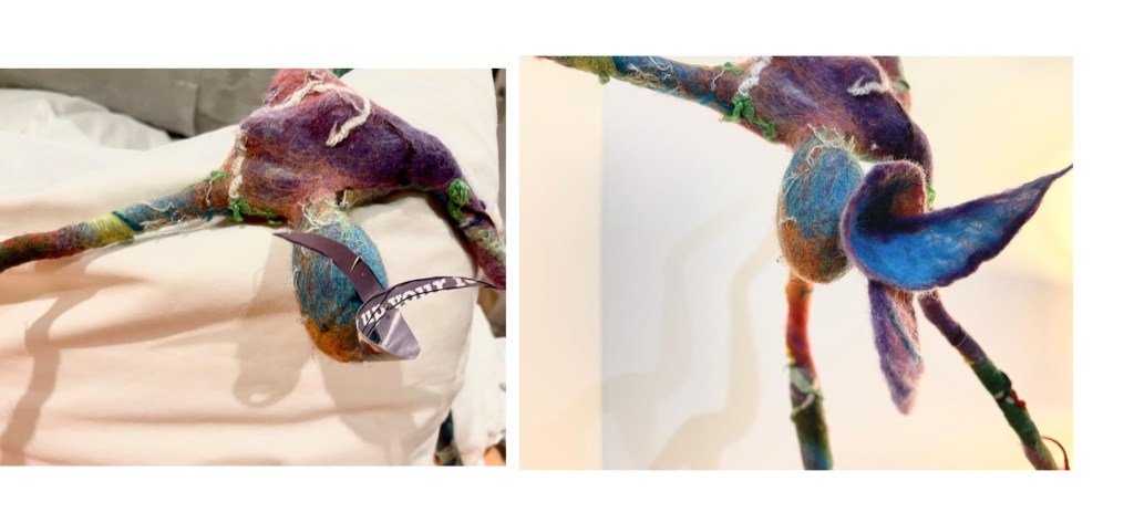 I would like to thank Feltmakers Ireland and guild member Doris Reinisch for the generous bursary prize of €250 award for 2024. Doris’s name was originally pulled from the draw at our annual AGM. However, due to her having previously won the bursary prize, Doris kindly permitted us to randomly select another name from the draw and give the prize to another member. {You can read about what Doris studied HERE on the blog.}