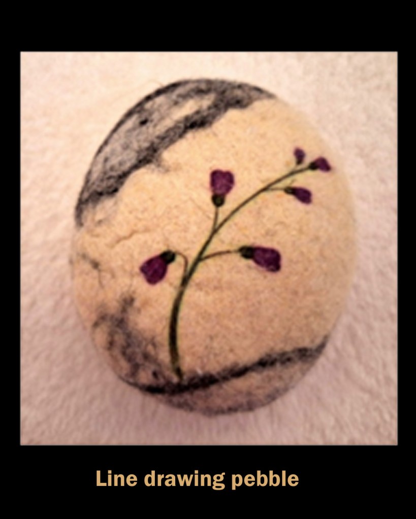 I really enjoyed making the below nature-printed pebbles and brooches using core wool and 19-micron Merino wool. I am pleased with the finished printed results.