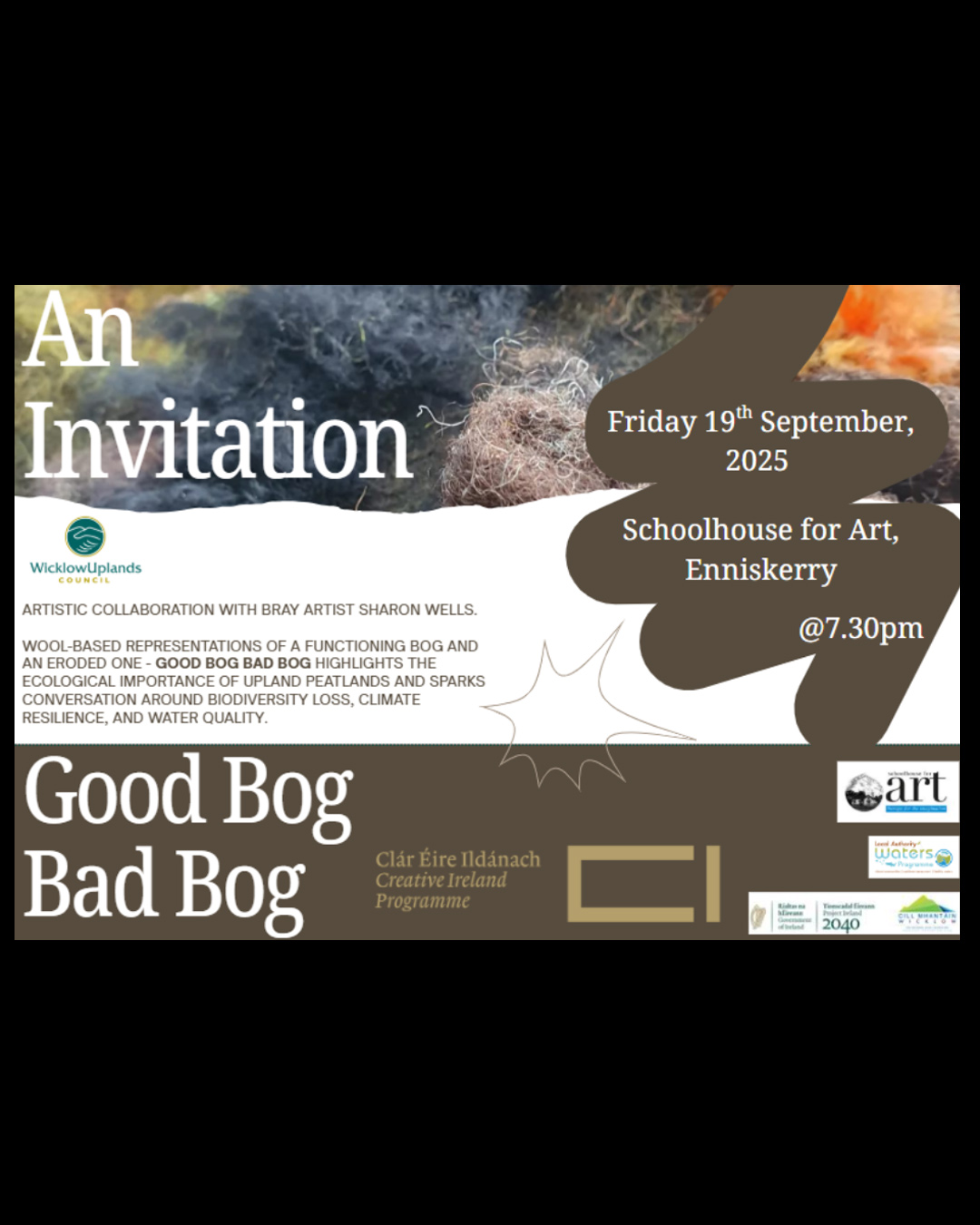 In addition to the installation incorporating Irish wool, the exhibition includes other installations featuring natural materials such as plants and shells, along with paintings, drawings, and sound art by Vicuรฑa.