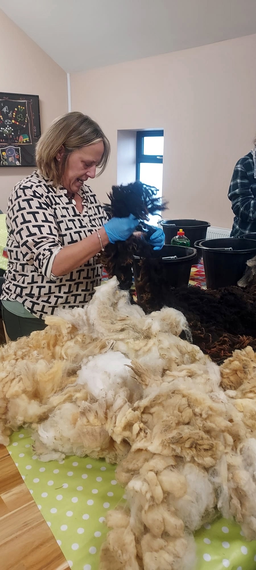 Feltmakers Ireland guild member Katarina Hruskova, of WoolStore Ireland, assisted the artist in preparing the wool used in the creation of the installation, titled ‘Aran Quipu’.