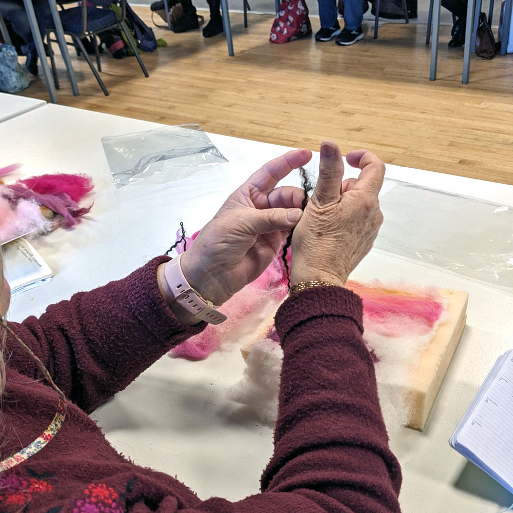 Thank you, Elizabeth and Clare, for sharing the treasures from your textile stashes—your contributions were truly appreciated by all our members. A big thank-you as well to our treasurer, Sam, for efficiently managing all the credit card payments. Lastly, thanks to all the feltmakers who attended the session and contributed to the warm, creative atmosphere. The event offered so many delights that we will certainly host another de-stashing sale in the future!