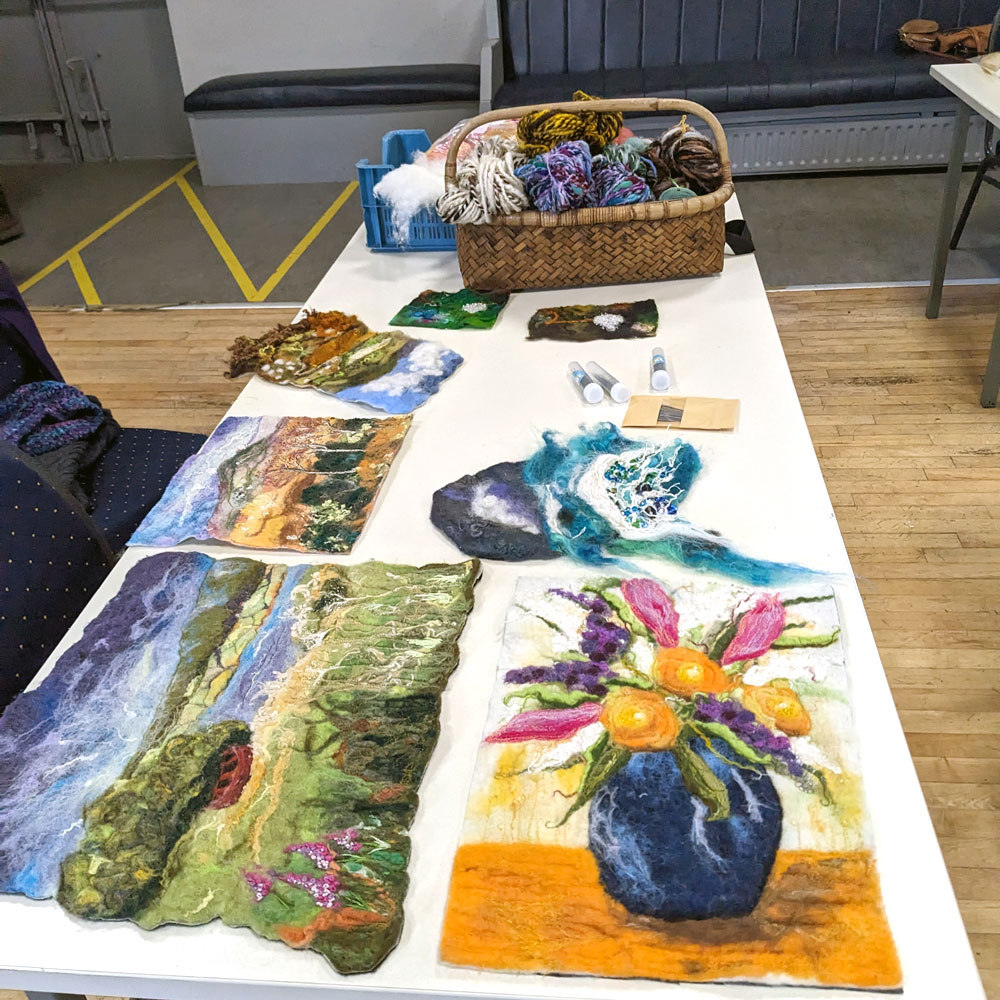 Elizabeth, Helene, AnnikaNeasaLory and ClodaghLiz and SuzetteSandy and SamMary and ClareA selection of needle-felted paintings. Sorry if we missed yours.