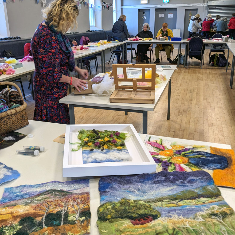 Throughout the Session, Elizabeth will demonstrate feltmaking using the various fibres and fabrics available. Come and see!