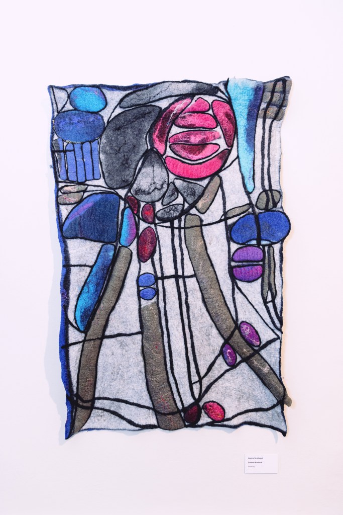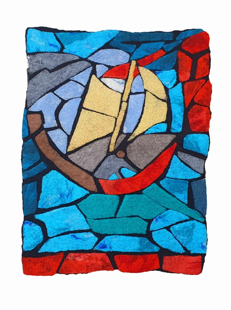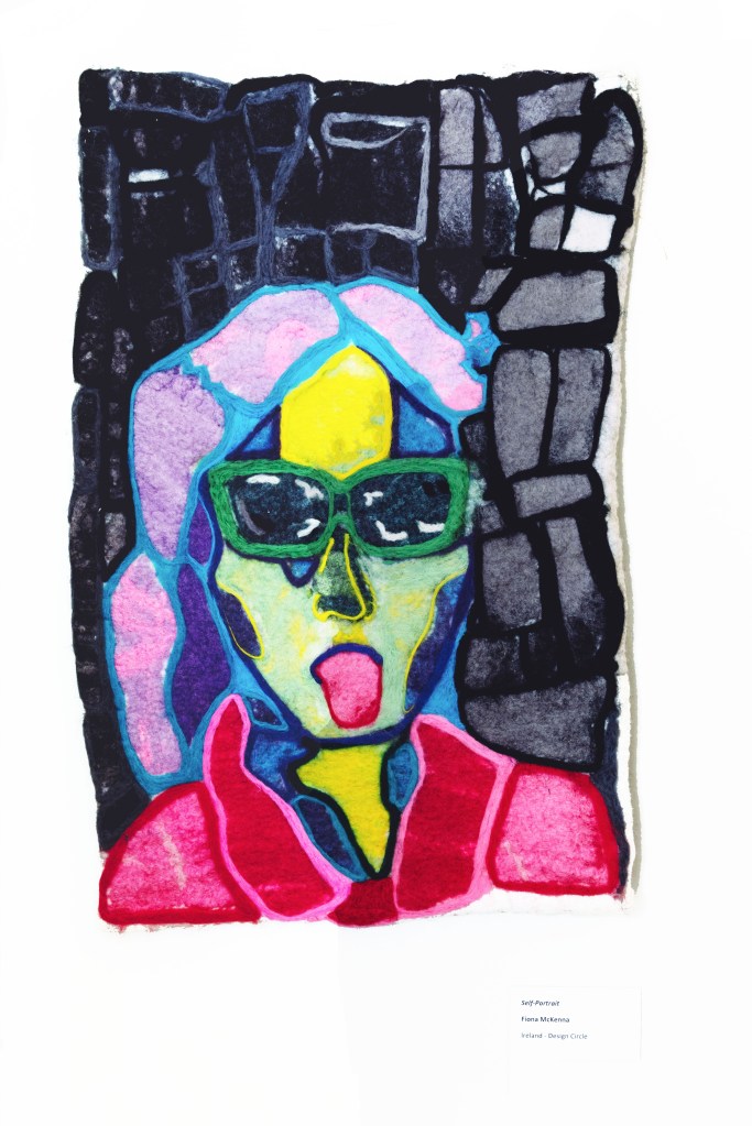 To make the letters stand out more clearly, students used the “stained glass felting” technique developed by Niki Collier during COVID-19, which culminated in an international exhibition that was shown at the Pearse Museum in Dublin and Gallery Kabllo, Vienna, in Austria – https://making.ie/stories/felt-stained-glass.