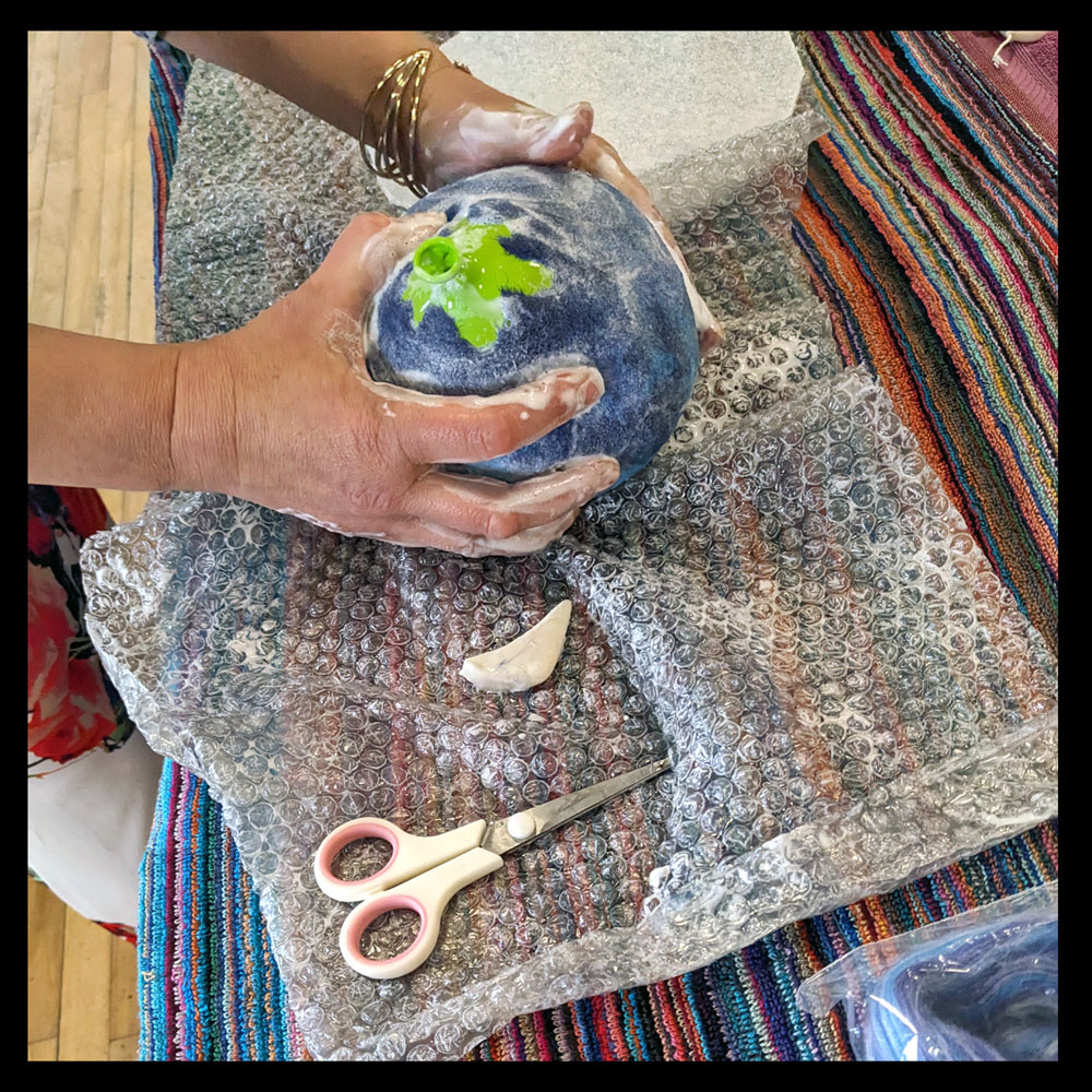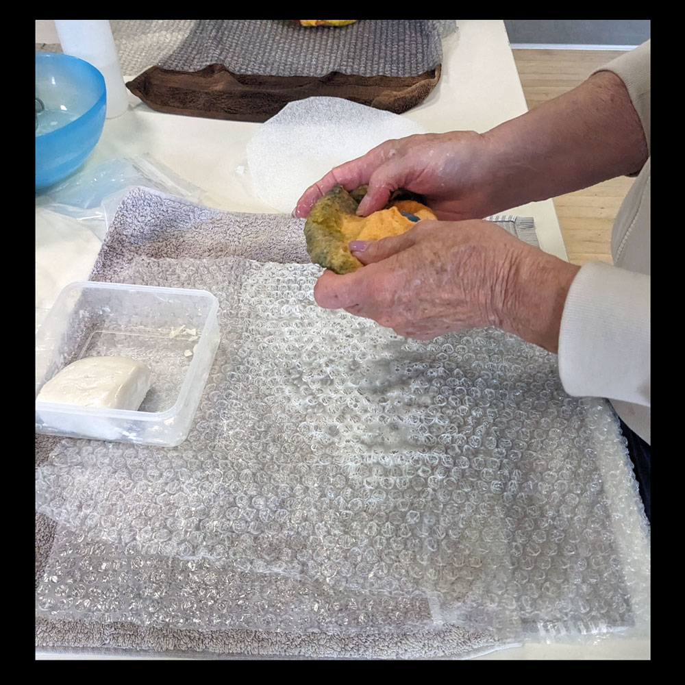 Feltmakers Ireland guild member Hélène Dooley is one of the mentors with the IFA Discovering Feltmaking Courses. She masterfully guided us through the ‘Cracked Earth’ and ‘Geode’ techniques during our April 2023 Sunday Session!