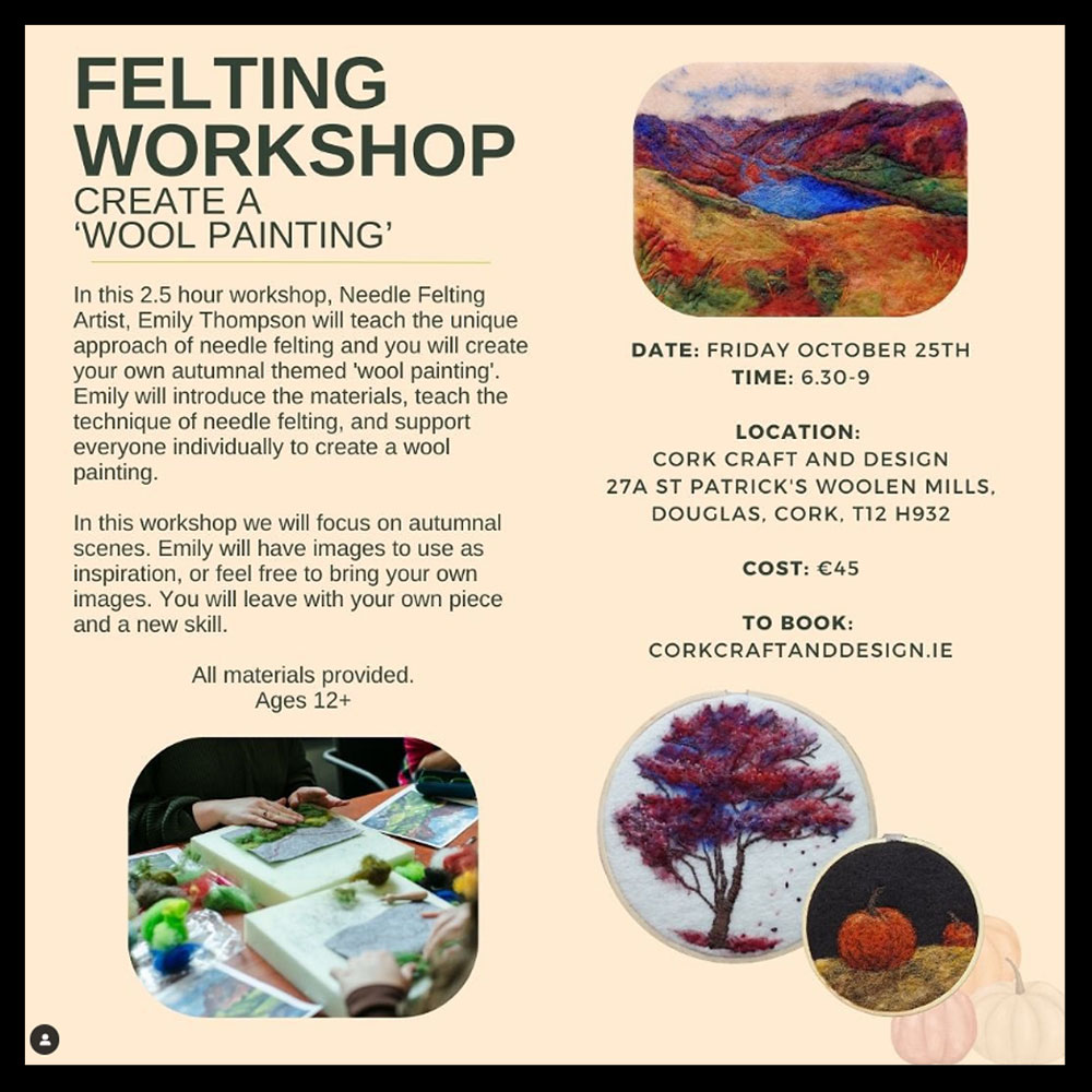 Feltmakers Ireland aims to share information about awards, education, events, exhibitions, and opportunities that you will find interesting. Our sharing is neither paid for by nor an endorsement of these individuals or organisations.