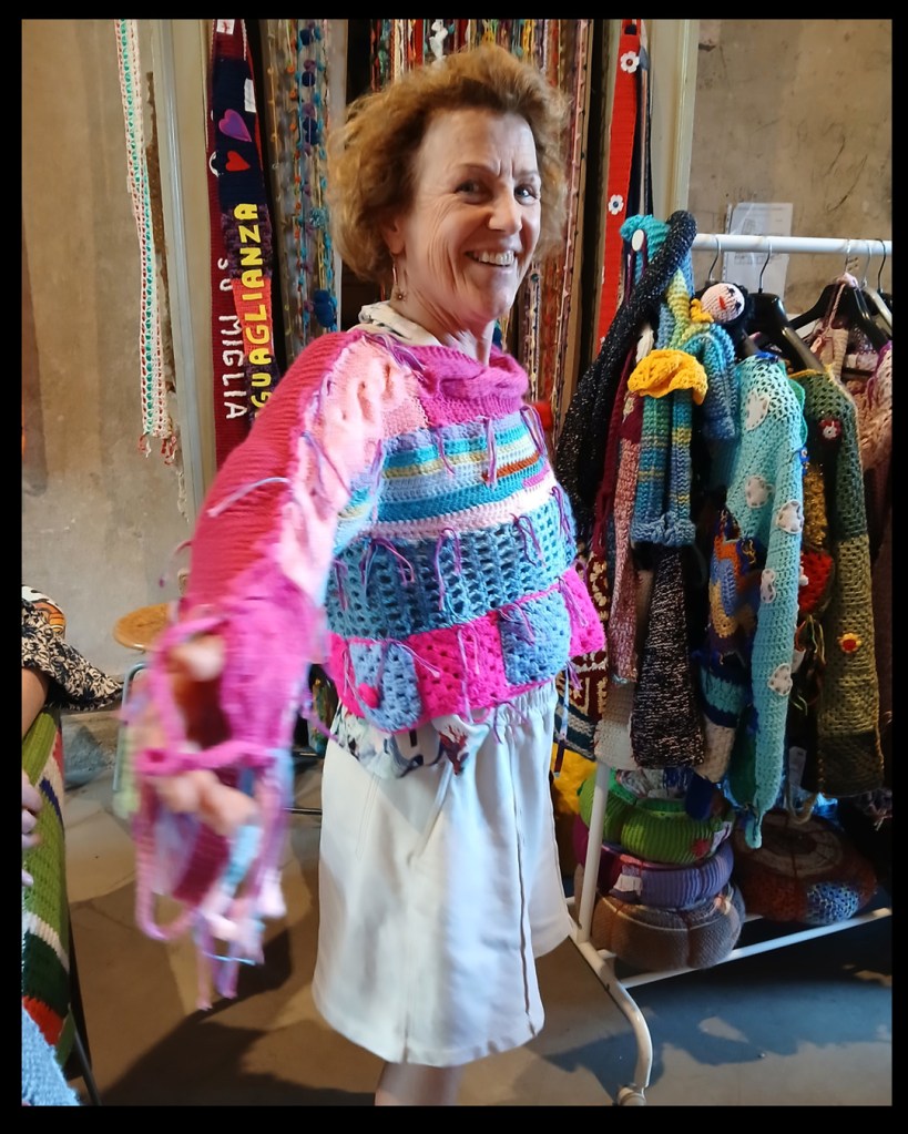 On the fourth day ( this sounds a bit biblical), we started our work placement at the wonderful Viva Vittoria. We had no idea what to expect. We had no Italian, just Google Translate on our phones, and to be honest, between the three of us, we had no skills in the knitting and crocheting department. So, uh ohh, guess what? This non-profit organisation is all about woolly squares. What to do?
