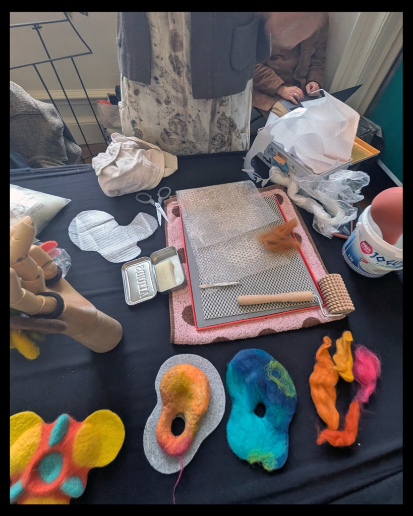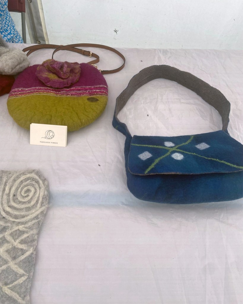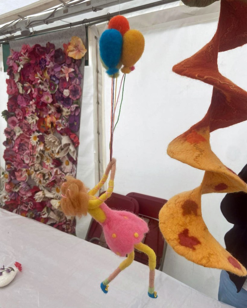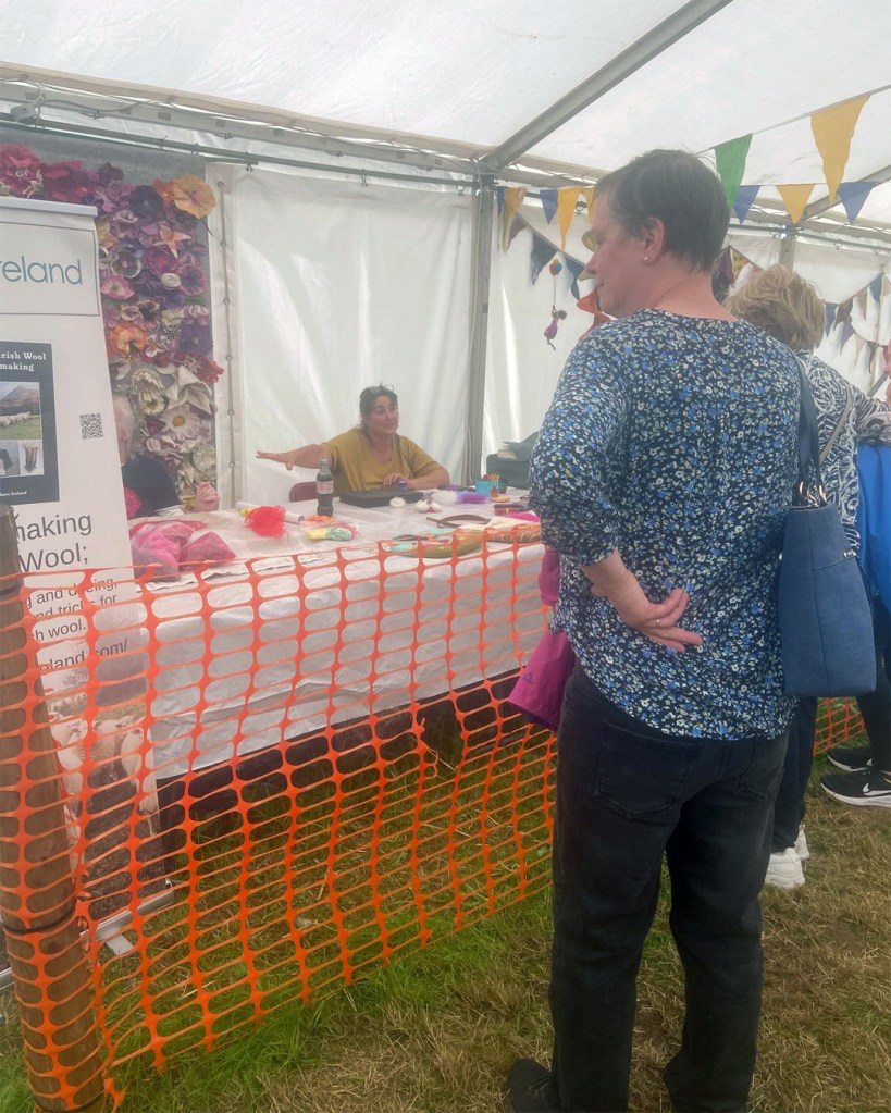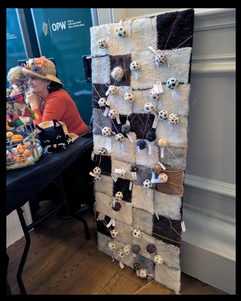 At the Textile Market, volunteers from Feltmakers Ireland set up a lively demonstration station where visitors could watch both wet felting and needle felting techniques. We talked passionately about the guild’s mission to keep traditional feltmaking skills alive, to celebrate Irish wool in all its glorious variety, and to foster creativity and community through this extraordinarily versatile material.