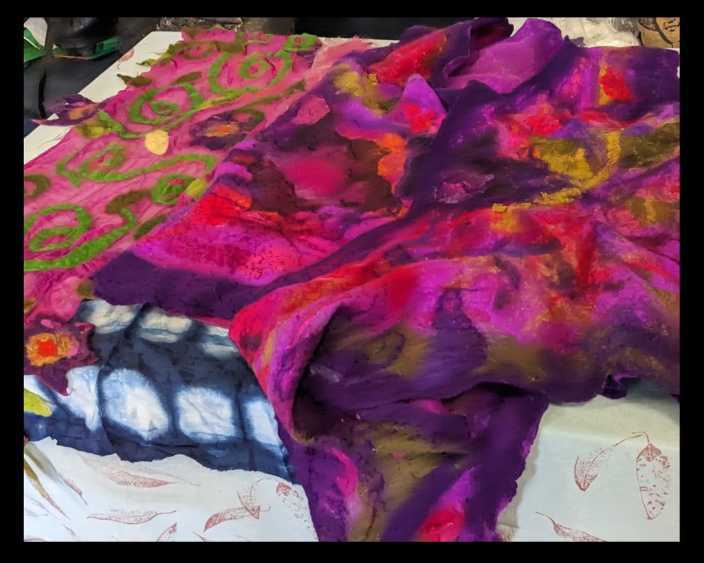 Thank you, Elizabeth and Clare, for sharing the treasures from your textile stashes—your contributions were truly appreciated by all our members. A big thank-you as well to our treasurer, Sam, for efficiently managing all the credit card payments. Lastly, thanks to all the feltmakers who attended the session and contributed to the warm, creative atmosphere. The event offered so many delights that we will certainly host another de-stashing sale in the future!
