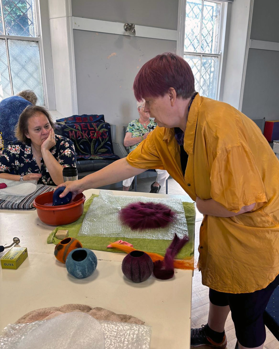 Thank you, Elizabeth and Clare, for sharing the treasures from your textile stashes—your contributions were truly appreciated by all our members. A big thank-you as well to our treasurer, Sam, for efficiently managing all the credit card payments. Lastly, thanks to all the feltmakers who attended the session and contributed to the warm, creative atmosphere. The event offered so many delights that we will certainly host another de-stashing sale in the future!