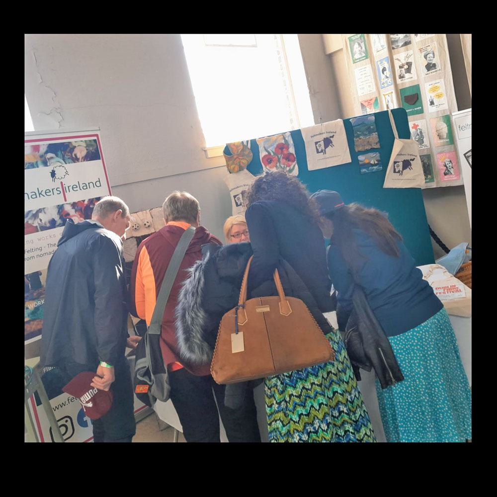 On Saturday, the 26th of September, volunteers from Feltmakers Ireland shared feltmaking with visitors to the Dublin Fibre Festival. We increased awareness of our guild, demonstrated feltmaking (wet and needlefelting), sold many copies of our book, ‘Exploring Irish Wool for Feltmaking’, and sold felted pieces created by some of our volunteers.
