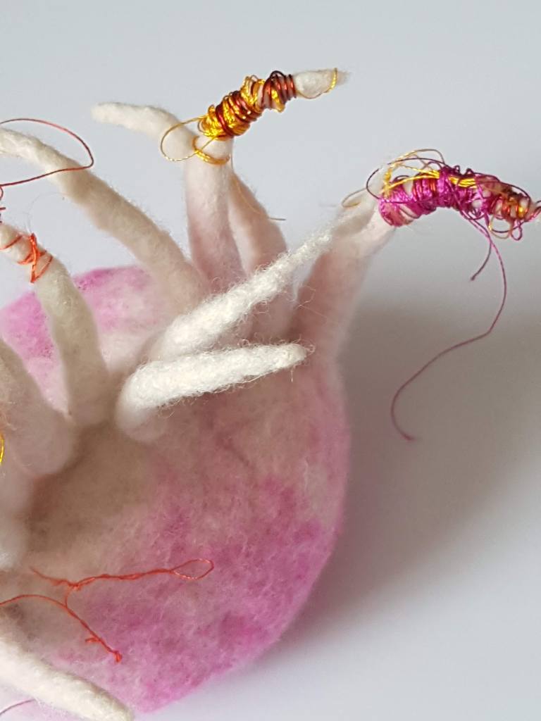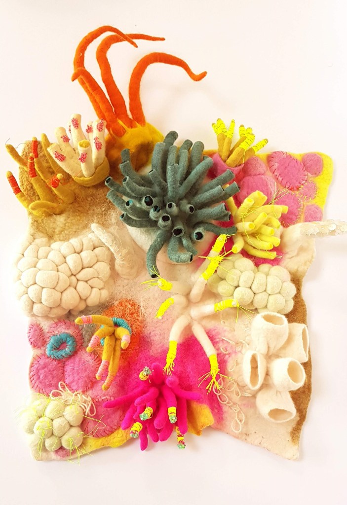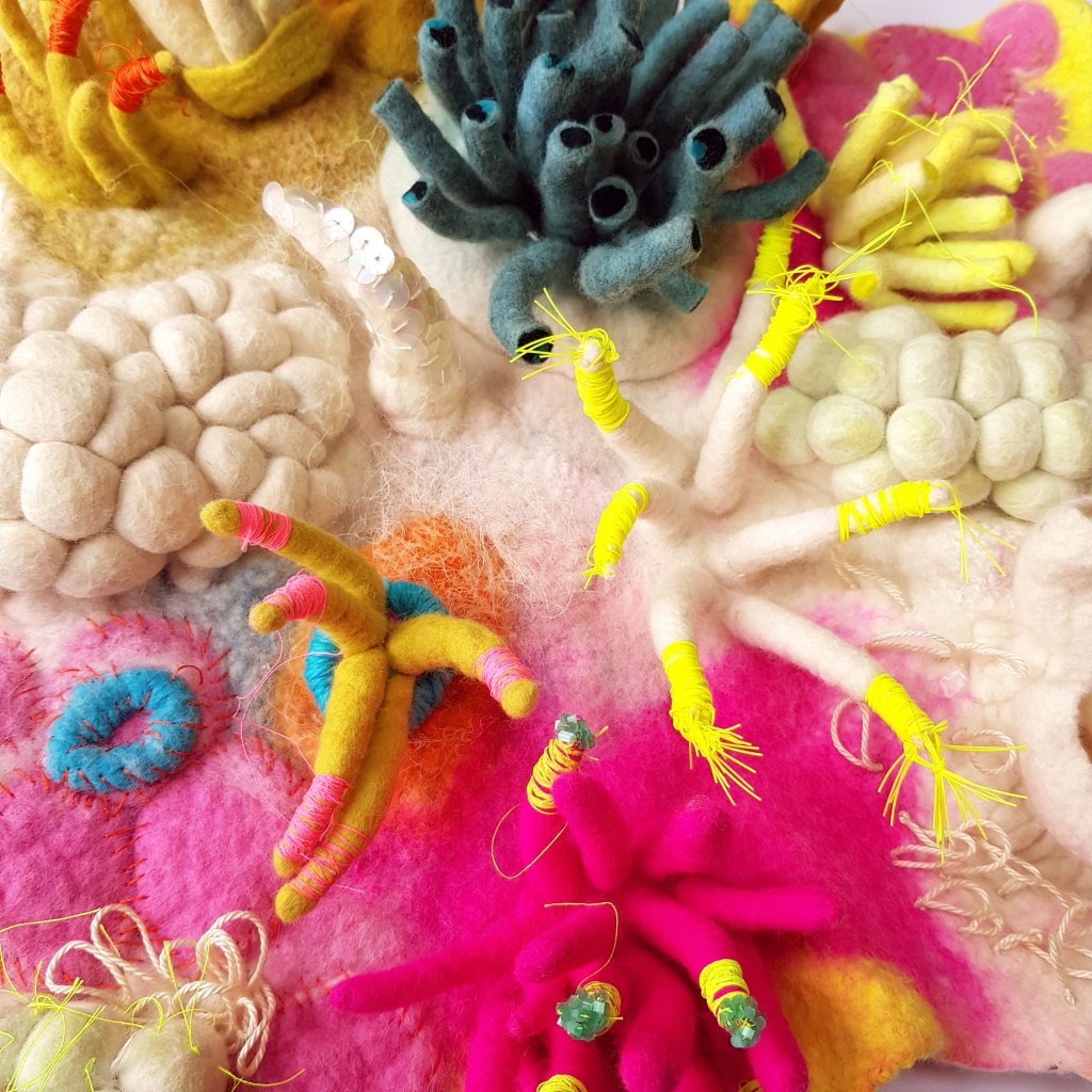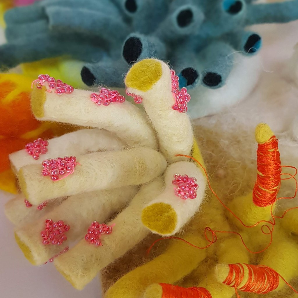 Last year I undertook the #100day project and many of the small pieces I created reminded me of coral or sea creatures. I spent some time collecting plastic waste and ghost fishing nets and incorporated small pieces of these into my work. I suppose that this “Coral Bleaching” piece is a continuation of that work.