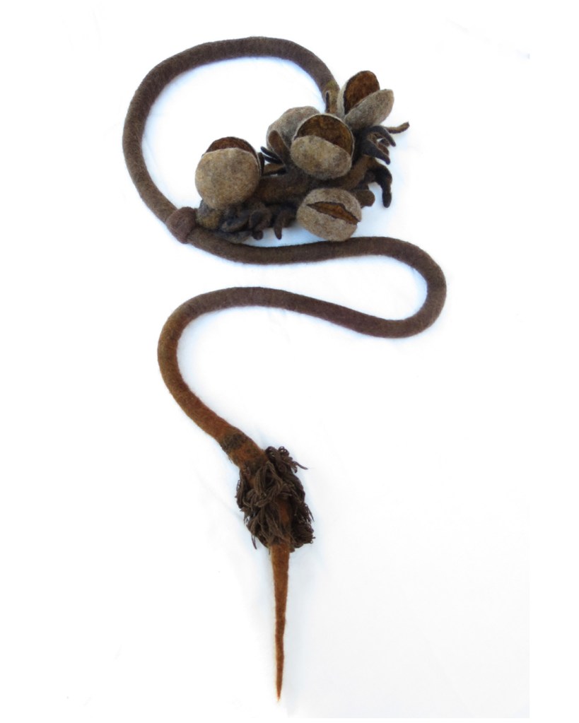 Pam de Groot is an Australian textile artist celebrated for her innovative approach to three-dimensional felting. With a deep passion for transforming raw fibres into intricate, wearable sculptures, Pam’s work blends traditional techniques with contemporary flair. Her creations often feature bold textures, vibrant colours, and unexpected materials, pushing the boundaries of what felt can achieve. During the workshop, her warm and engaging teaching style shone through, making complex techniques accessible and exciting for all skill levels.